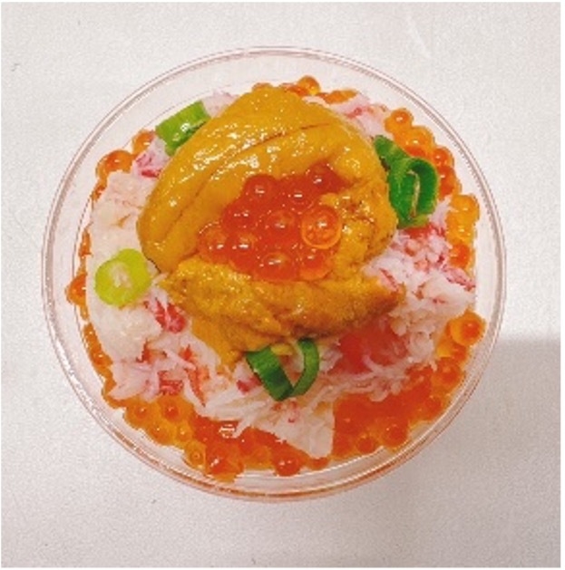 かわいいガチャポン容器にうに・ズワイガニ・いくらと豪華ネタを盛り付けたプチ贅沢な海鮮パフェです。