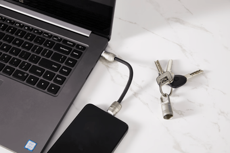 鍵と一緒に持ち歩けるため、「ケーブルがない」「探すのが面倒」という日常のストレスを解消。