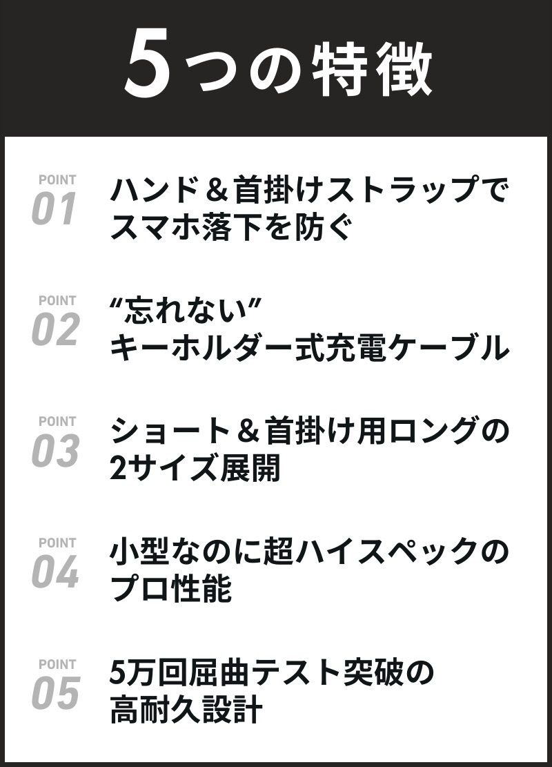 落下のヒヤッを防ぐ。首掛け&ハンドストラップ