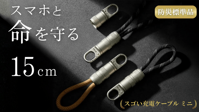 スマホと“もしも”を守る15cm。 「スゴいミニケーブル」がMakuakeにて先行販売開始 首掛け&キーホルダーになる“守る充電ケーブル”