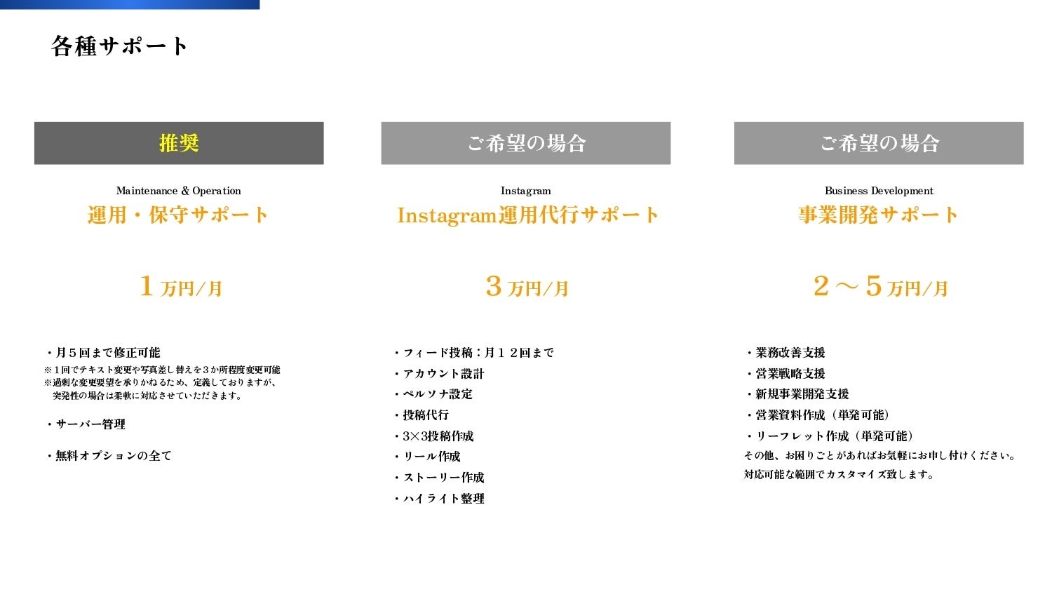 ○事業開発サポート:2~5万円/月
