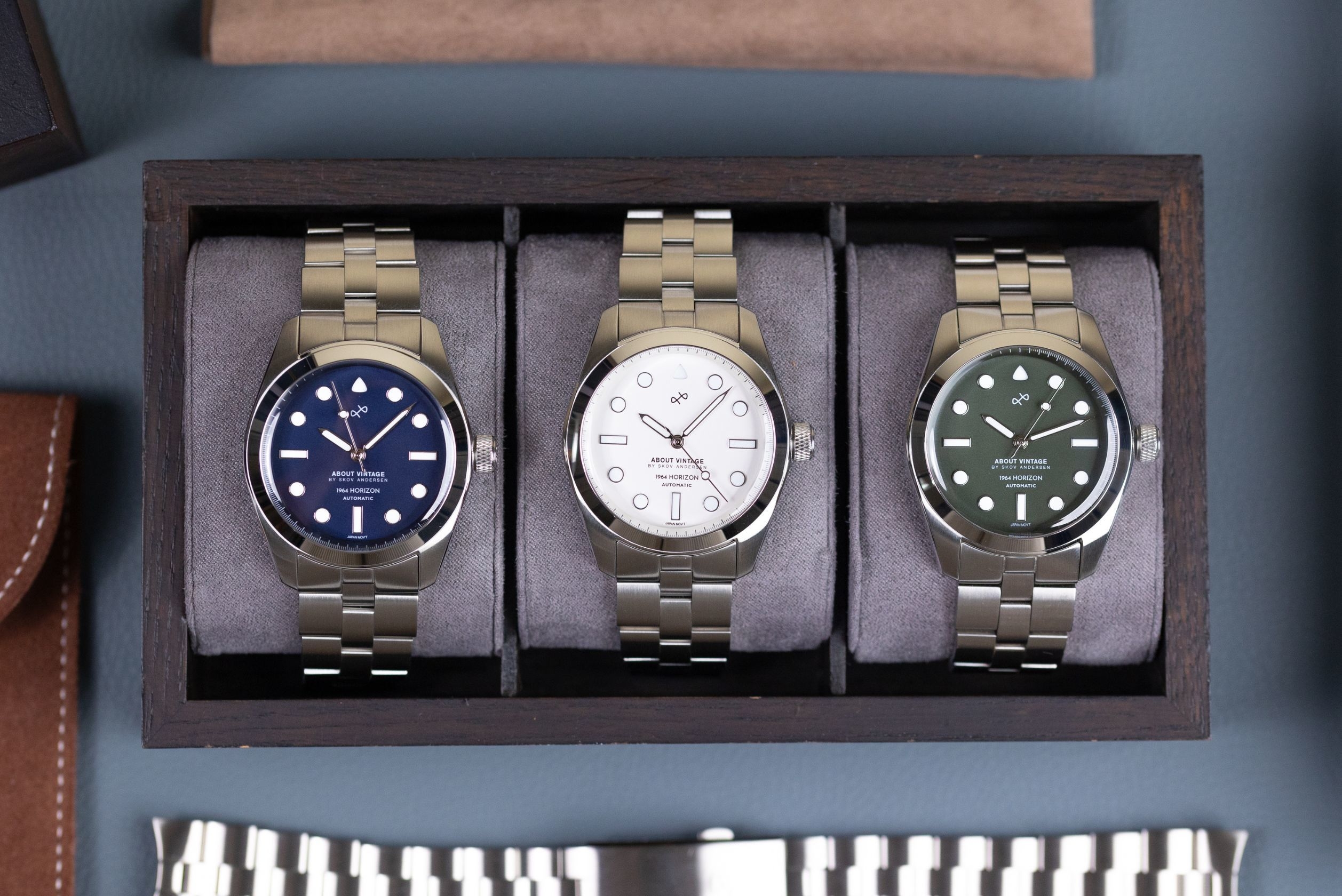 北欧腕時計ブランドAbout Vintage(アバウト・ヴィンテージ、本社:デンマーク首都コペンハーゲン)は、同ブランド人気モデル1964 Horizonのオートマチックモデル(自動巻き腕時計)を2023年9月4日(月)に販売を開始します。クオーツ式とは一味違うマット仕上げが特徴で、ブルー・グリーン・ホワイトの3色展開で各100本限定の数量限定販売です。2023年8月21日に情報解禁で事前登録開始。9月4日~14日までは、お得に購入できるプレオーダー期間なのでお見逃しなく!