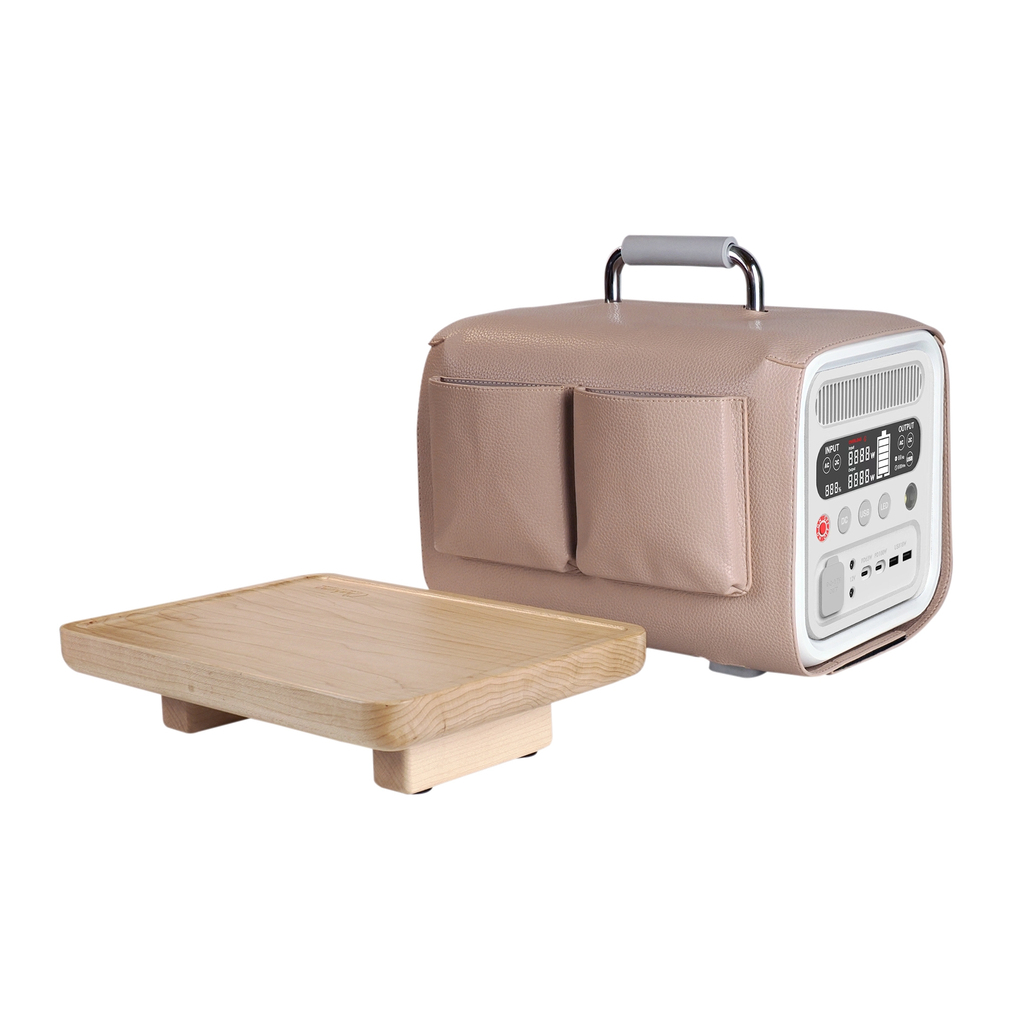 周辺アクセサリーとして既存の大容量ポータブル電源S2200と同様に、S600本体上部の取手にセットすることでテーブルになる「CHABUMA(チャブマ)」と「PUレザーカバー」をラインナップ。