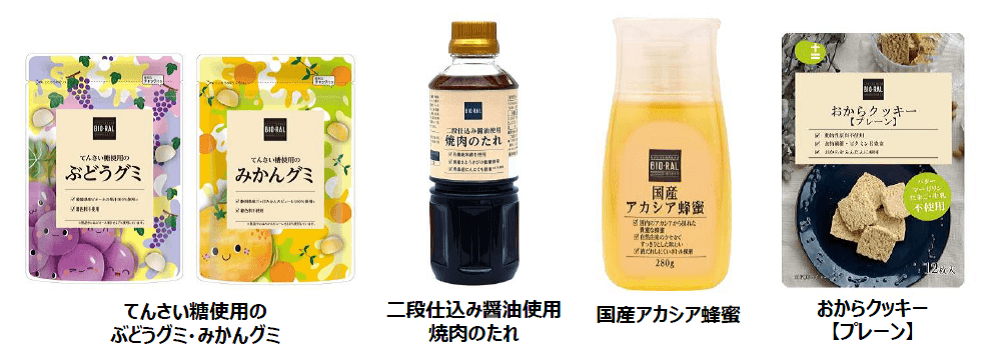 新商品として、産地を限定した果汁使用の「グミ」や、国産素材にこだわった「焼肉のたれ」、「国産アカシア蜂蜜」、「おからクッキー」が登場いたします。