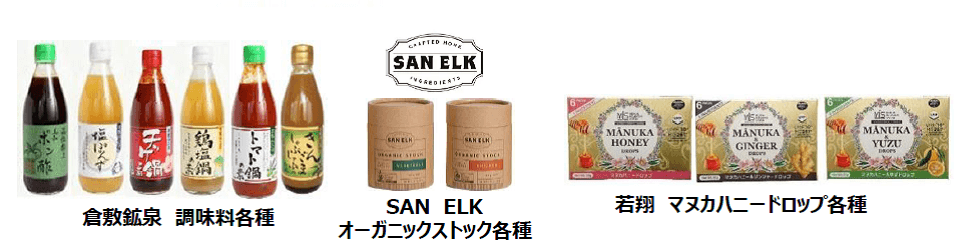 また、水を一滴も加えず、果汁とだしでつくったポン酢を取り扱う「倉敷鉱泉」や、「SAN ELK」の有機JAS認証を取得した粉末調味料、「若翔」のマヌカハニードロップなど、「オーガニック・ローカル・ヘルシー・サステナビリティ」のコンセプトに沿った100種類以上の新商品を導入いたします。