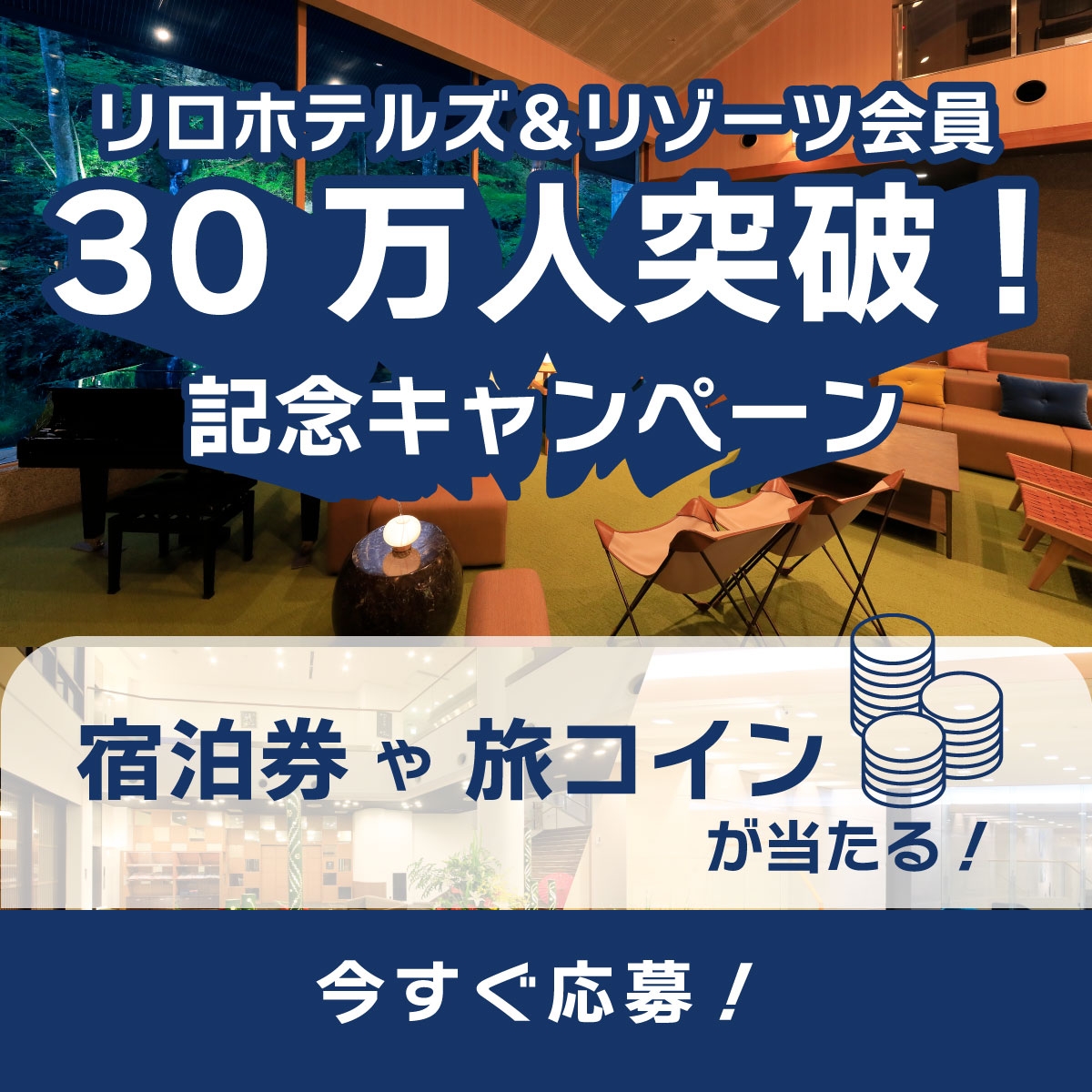 会員30万人突破記念キャンペーン実施!抽選で宿泊券プレゼント <2023年12月21日まで>リロホテルズ&リゾーツ