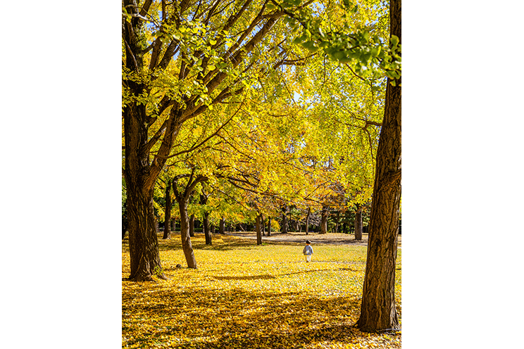 公園は人間だけでなく、わんちゃんにとっても憩いのスポット。画面たっぷりに見せたイチョウの黄色の中に、少し凛とした雰囲気のわんちゃんがとっても似合います。お洋服も紅葉にマッチ。季節を感じる公園の風景+犬という写真を真似して撮ってみたくなる作品です。