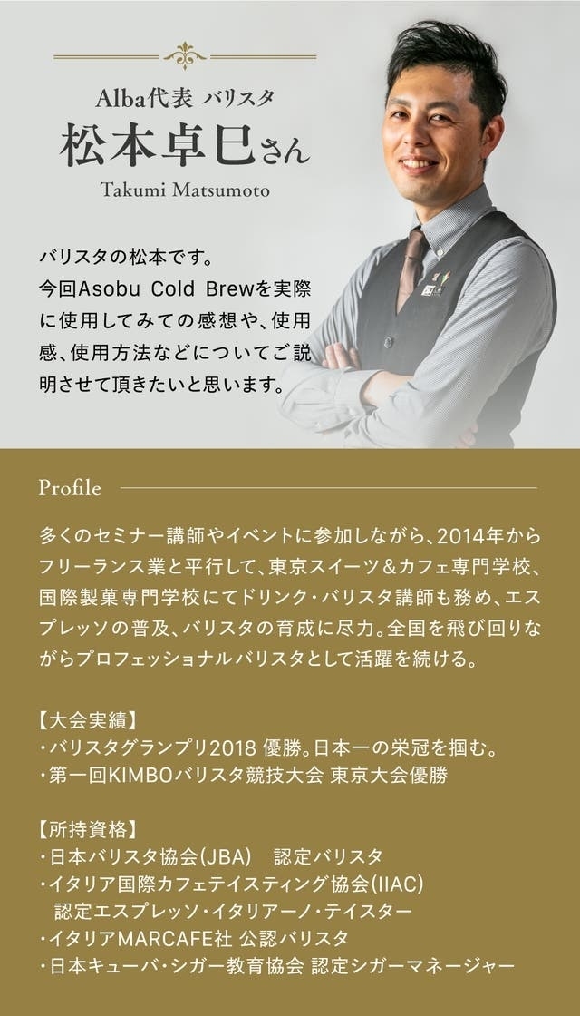 バリスタグランプリ優勝者・松本 卓巳さんのコメント