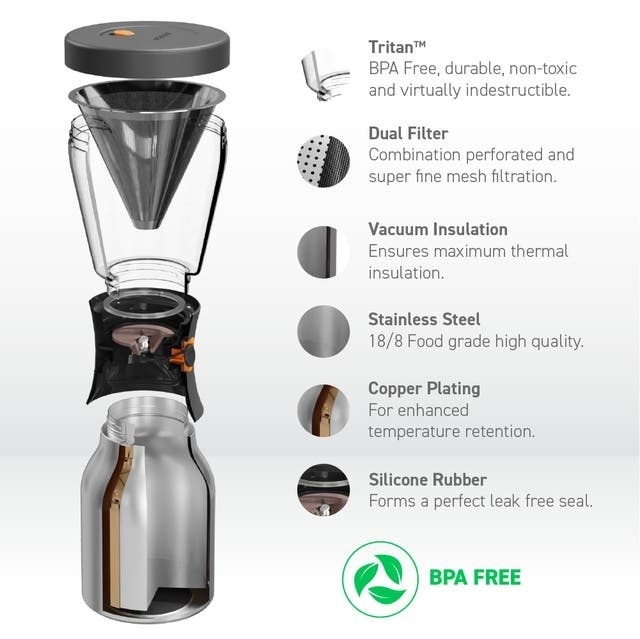 水出しコーヒーをボタンひとつで冷たいまま保存できる 「Asobu Cold Brew」をAmazon、楽天市場に販売開始 アイスは約24時間、ホットの場合は12時間温度を維持