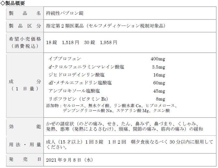 大正製薬株式会社[本社:東京都豊島区 社長:上原 茂](以下、当社)は、パブロンシリーズから、1日2回の服用で、つらいのどの痛み・せき・鼻みず・熱など、かぜの諸症状に効く「持続性パブロン錠」を新発売いたします。