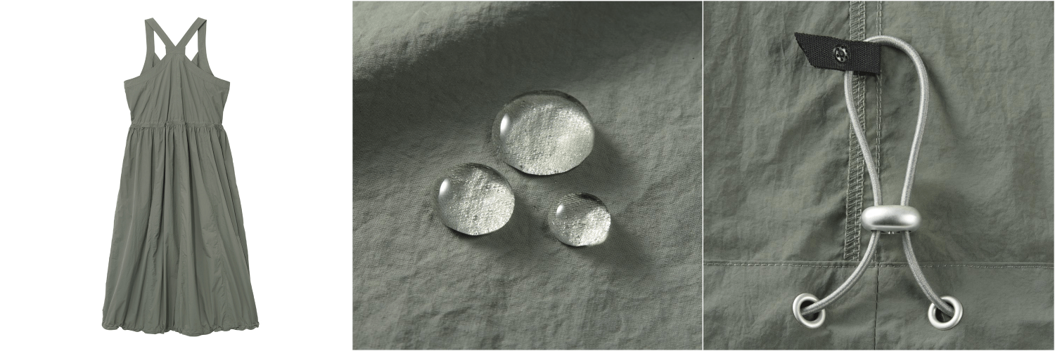 軽量で可愛らしい快適なジャンパースカートは、すとんと纏えば今っぽく決まる一品です。はっ水素材でありながら、晴れの日も快適に着ることができます。軽やかなドレープとマットな光沢を備えたデザインは、大人っぽさを引き立てます。ウエストと裾まわりのドローコードにより、フィット&フレアやバルーンシルエットなど自在なスタイリングが可能です。さらに、逆開ファスナーの裾側を開けばパンツとのコーディネートも楽しめます。