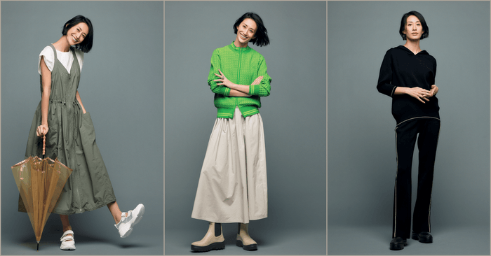 今季のレインアウターとして、軽さと可愛さに胸躍る快適ジャンパースカートや、雨の日もアクティブに過ごせるヘルシー美人のニットセットアップ、チアフルなカラーで気分も晴れやかなジップブルゾン、はっ水加工を施したミモレ丈のスカートをラインナップしております。