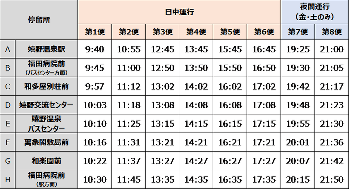 ※運行期間中の金曜日と土曜日(10月5日(土)除く)は夜間便(2便)を運行