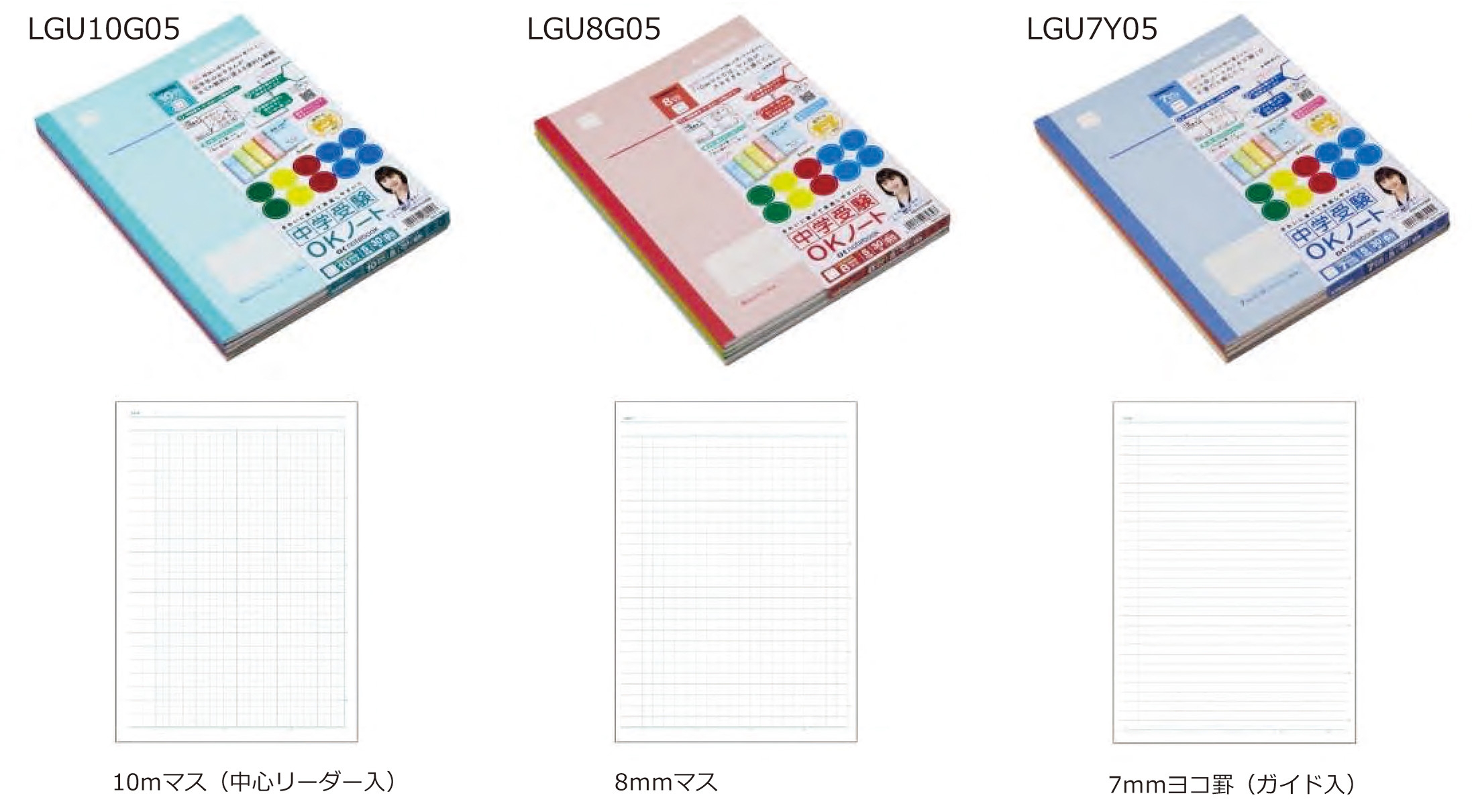 罫内容 :10mmマス(中心リーダー入)、8mmマス、7mmヨコ罫(ガイド入)