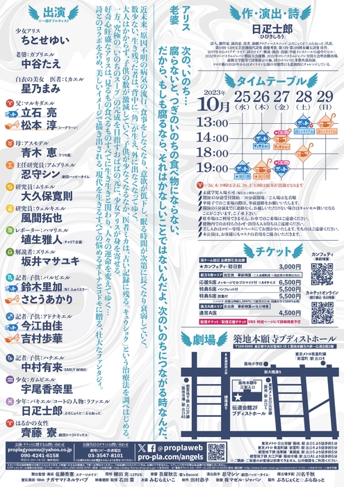 ぷろじぇくと☆ぷらねっと(代表:日疋士郎)主催、『Here Come The Angels!』が2023年10月25日 (水) ~2023年10月29日 (日)に築地本願寺ブディストホール(東京都中央区築地3-15-1)にて上演されます。