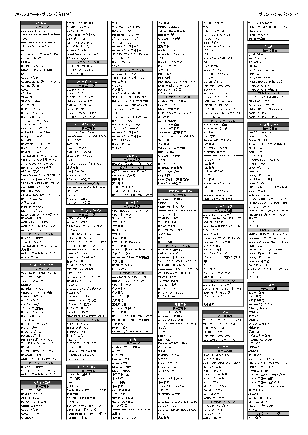企業編(総合)/企業編(BtoB)/衣/食/住/健康・福祉/車/電機・IT/流通・運輸/金融・不動産/情報・教育/趣味・レジャー