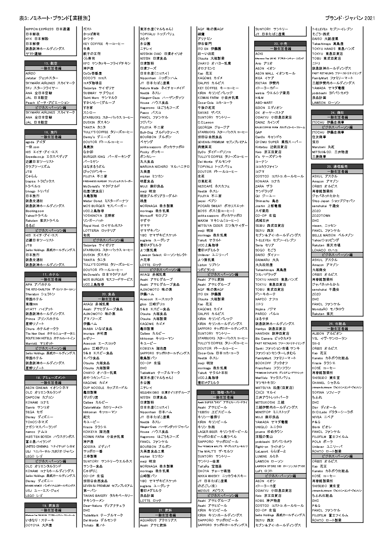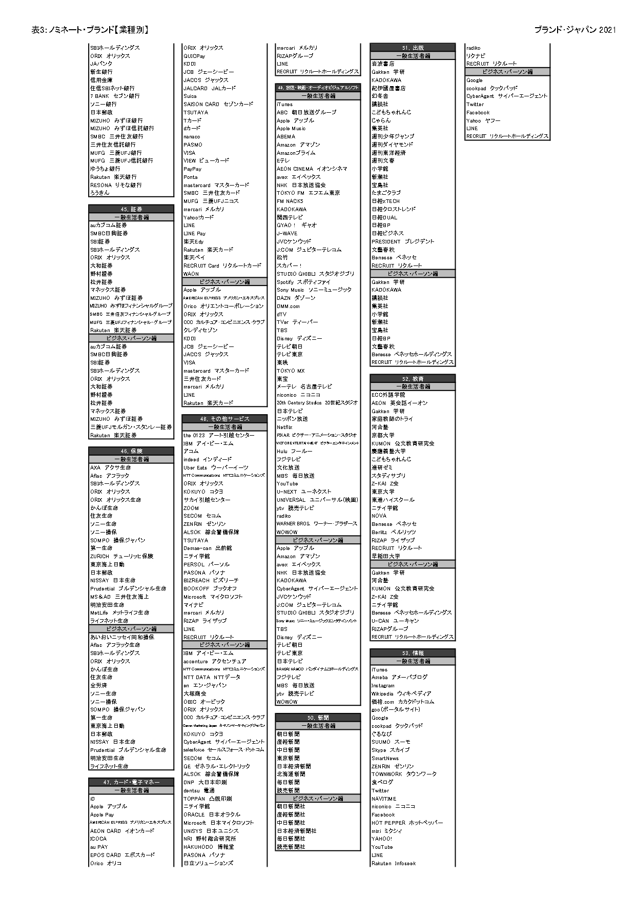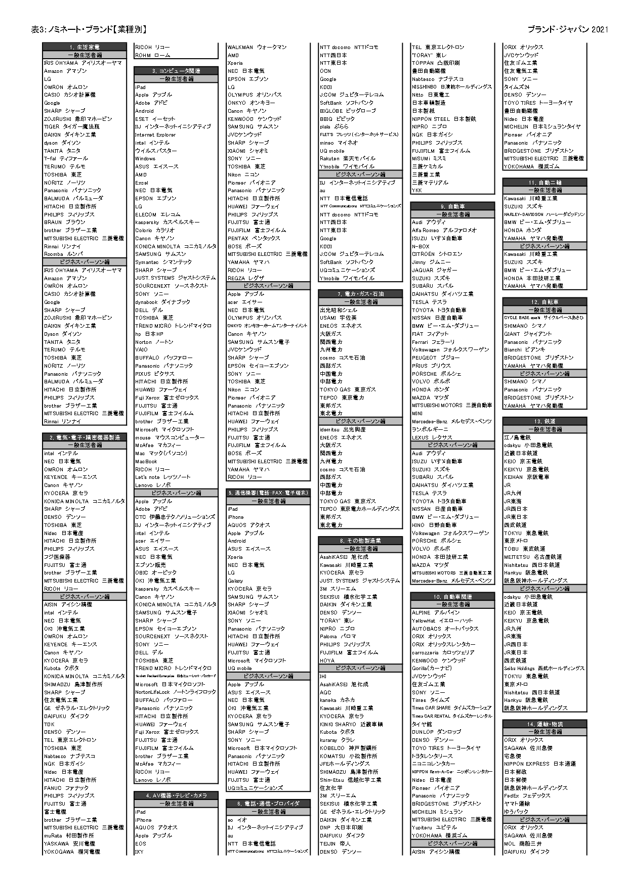 表3:ノミネートブランド(業種別一覧)【一般生活者編、ビジネス・パーソン編】