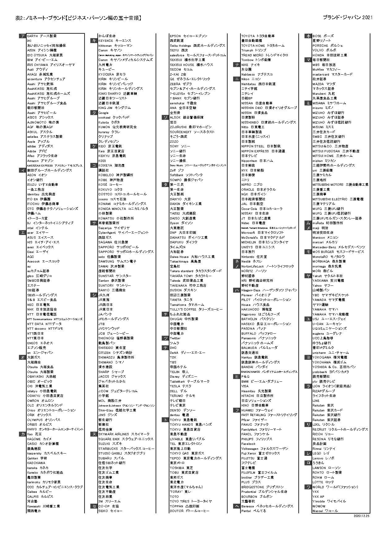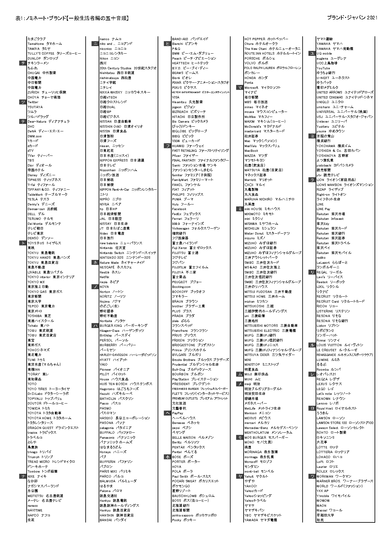 表2:ノミネートブランド(五十音順)【ビジネス・パーソン編】