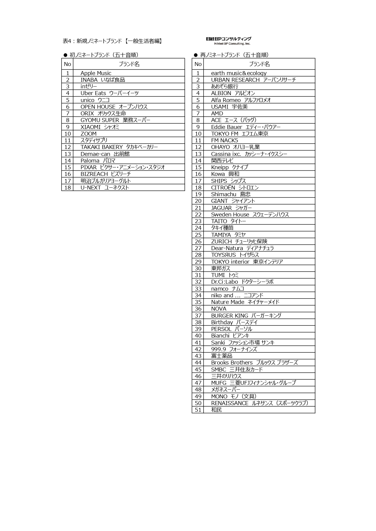 表1:ノミネートブランド(五十音順)【一般生活者編】
