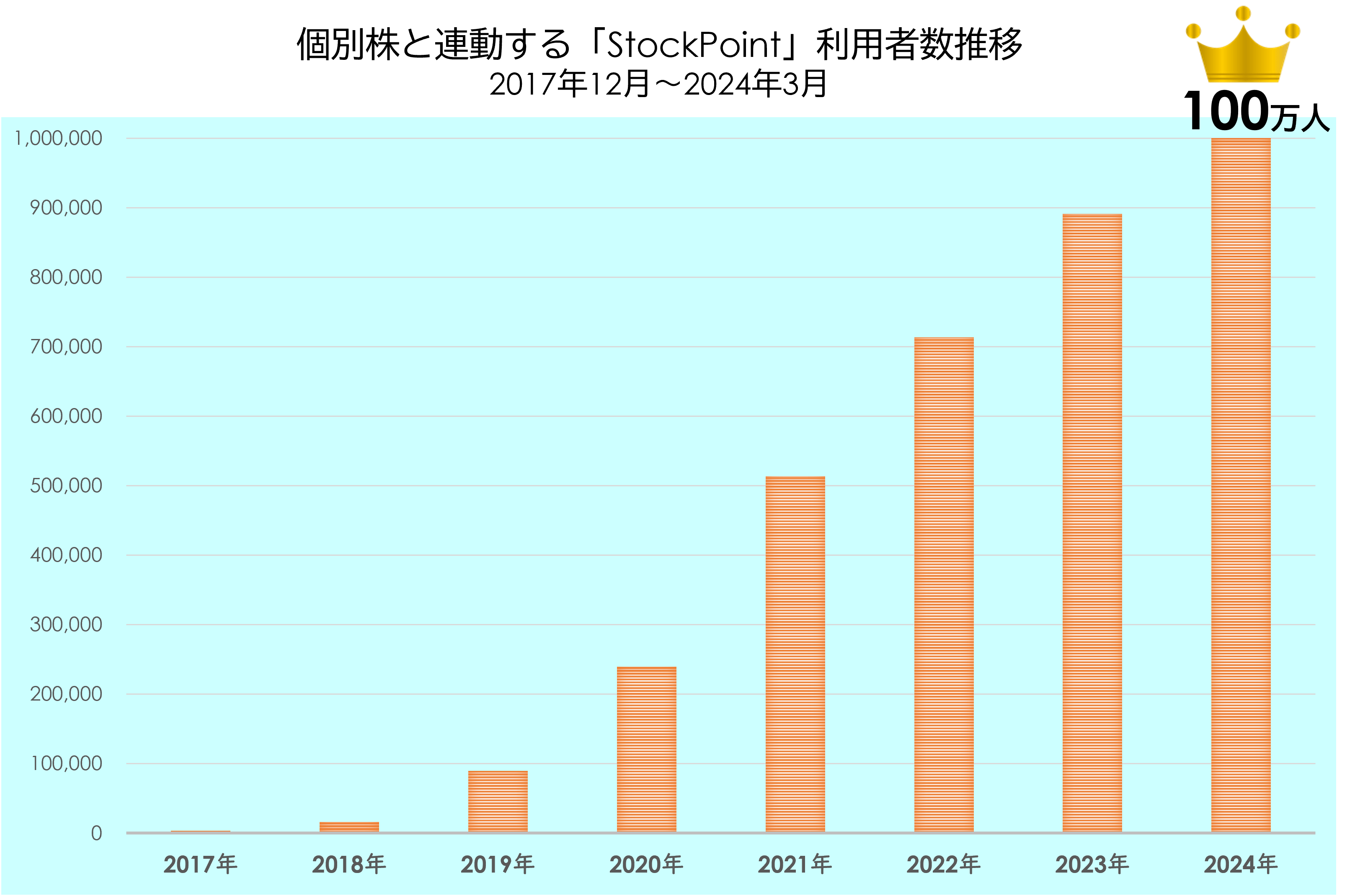 STOCK POINT 株式会社(本社:東京都港区、代表取締役社長:美好 琢磨、以下「STOCK POINT」)は、当社が運営するポイント運用サービス「StockPoint」を含む、『株価連動型ポイント運用システム』を活用したサービスの累計利用者数※-1が100万人を突破したことをお知らせ致します。