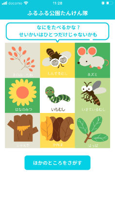 普段なにげなく訪れている公園は、たくさんのいきものが住んでいる場所でもあります。アプリの中で公園を探検して、いきものを探してなかよくなろう!