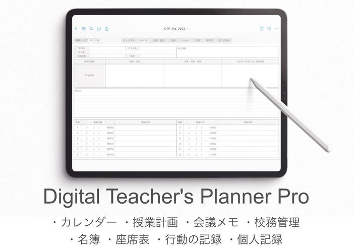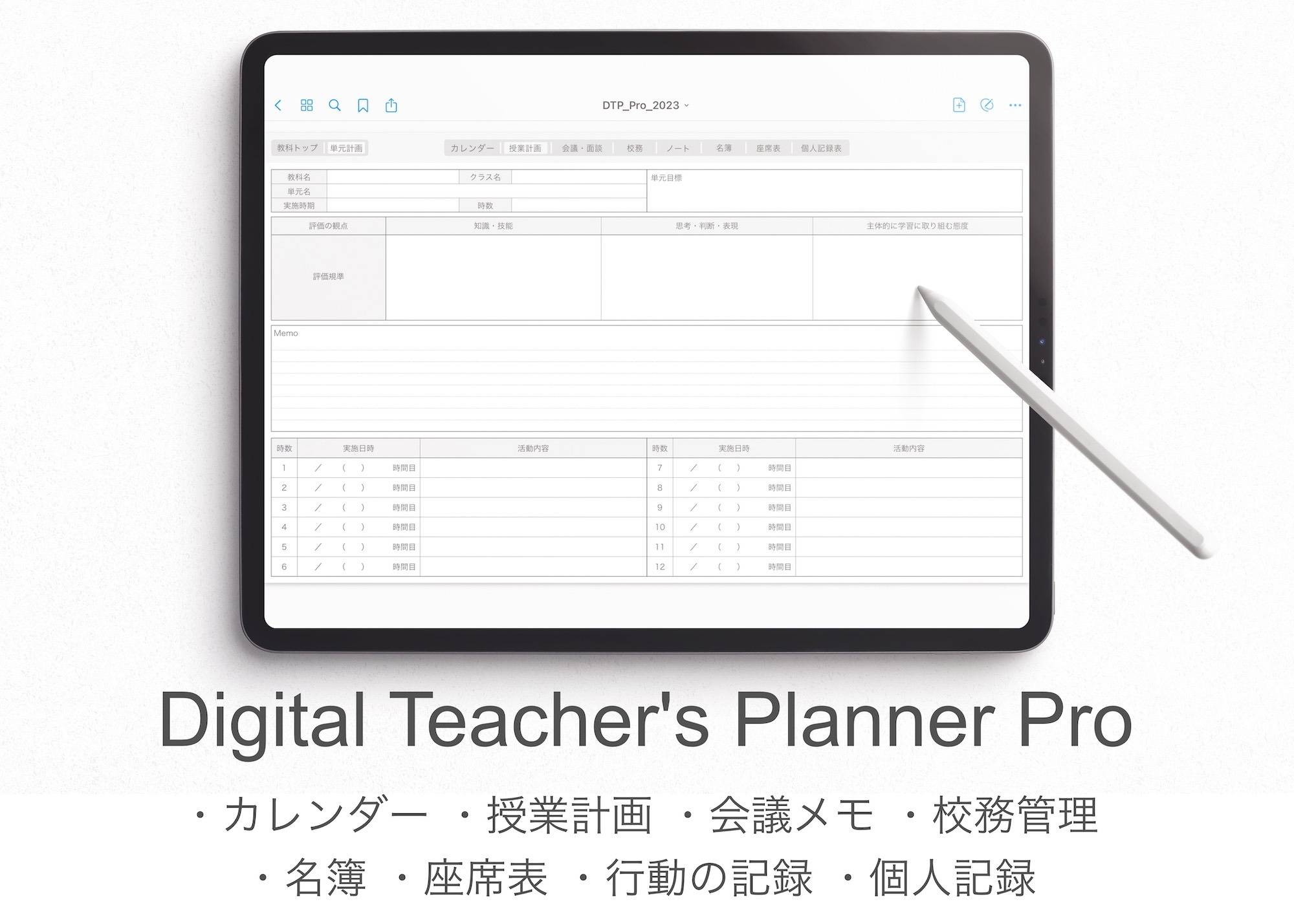 『Digital Teacher's Planner(デジタルティーチャーズプランナー)』は、元教員がデザインしたPDF形式の教師手帳で、iPadの手書きアプリなどに読み込んで使用する製品です。
