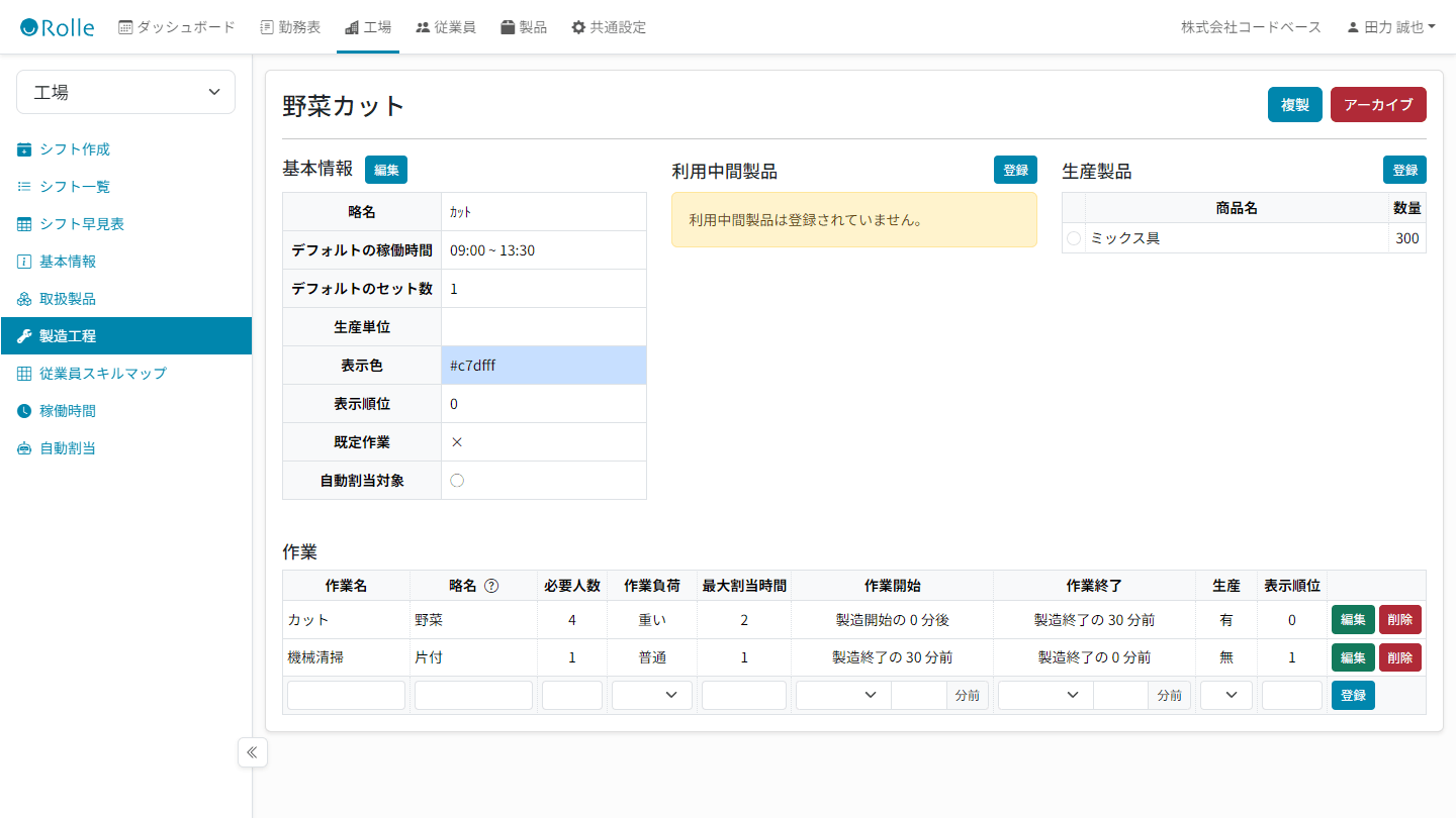 株式会社コードベース(東京都品川区、代表取締役:田力 誠也)は、食品メーカーと共同開発した、工場の作業シフト作成を自動化するクラウドサービス「Rolle(ロール)」の正式版の提供を2024年10月23日(水)より開始いたします。