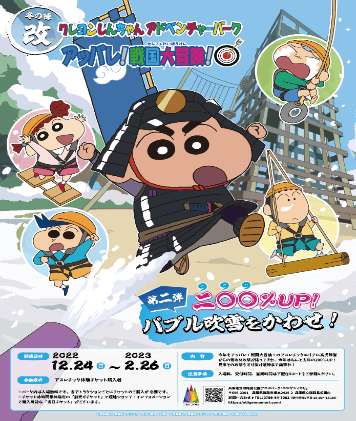 「クレヨンしんちゃんアドベンチャーパーク」の常設アトラクション「アッパレ!戦国大冒険!」にて、『アッパレ!戦国大冒険!冬の陣・改!』を2022年12月24日(土)~2023年2月28日(火)の期間限定で開催しております。