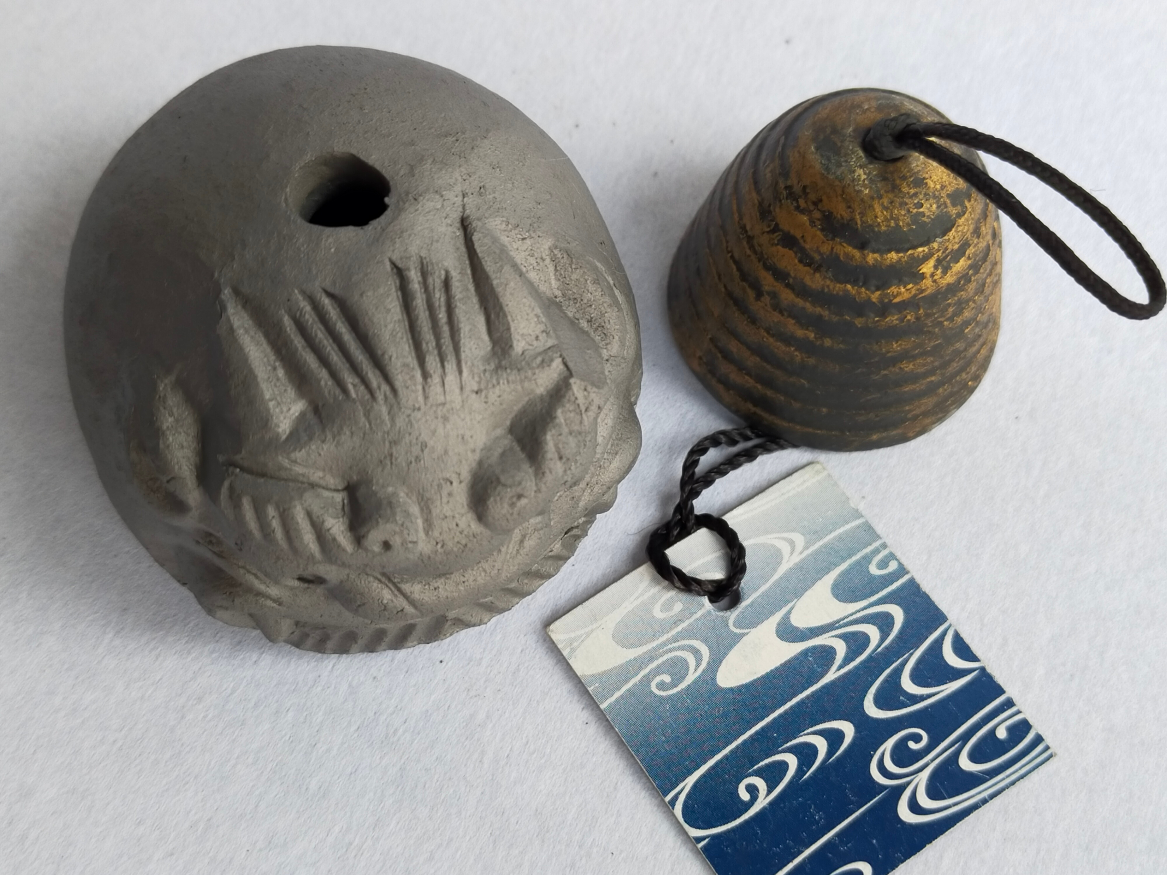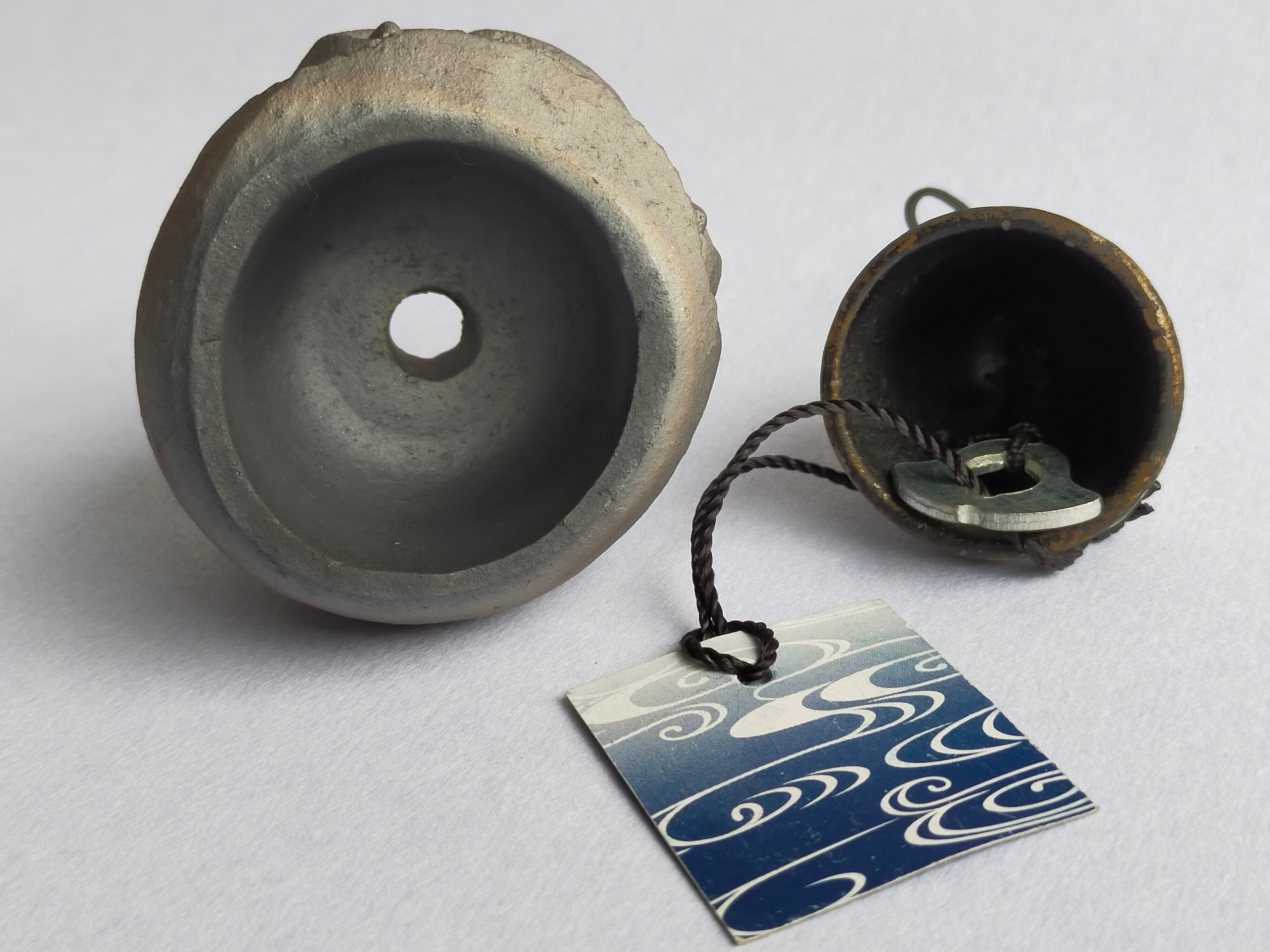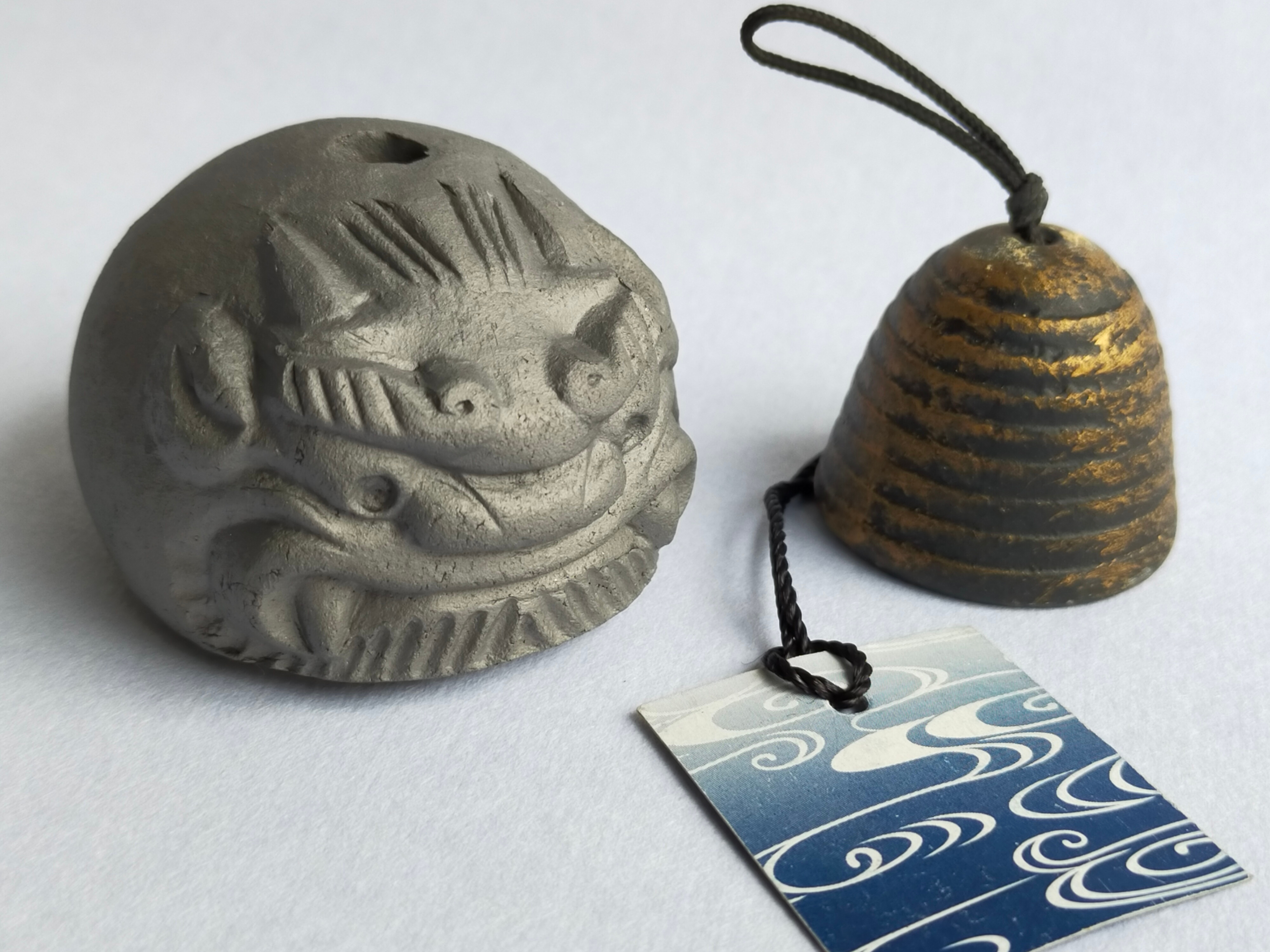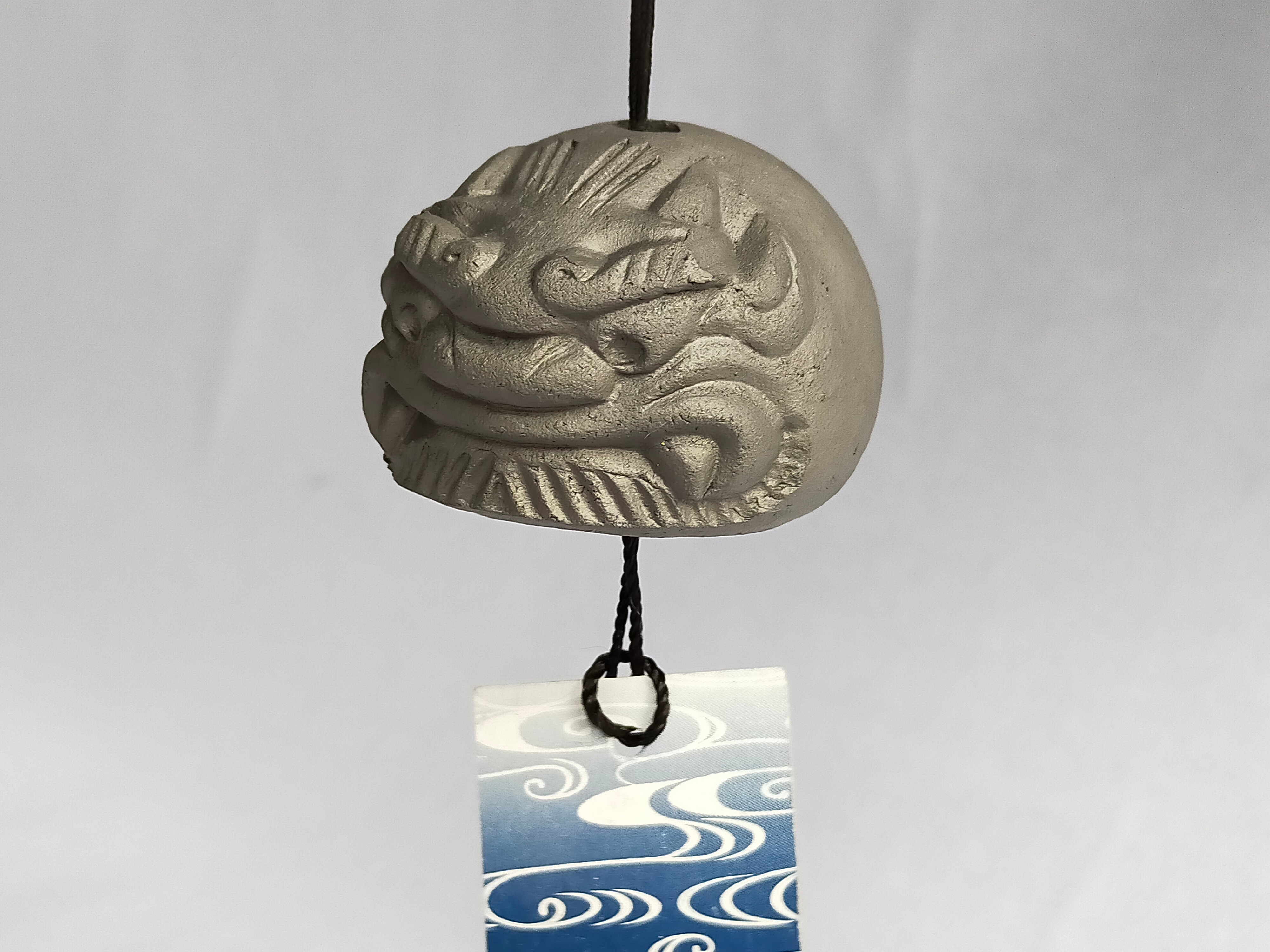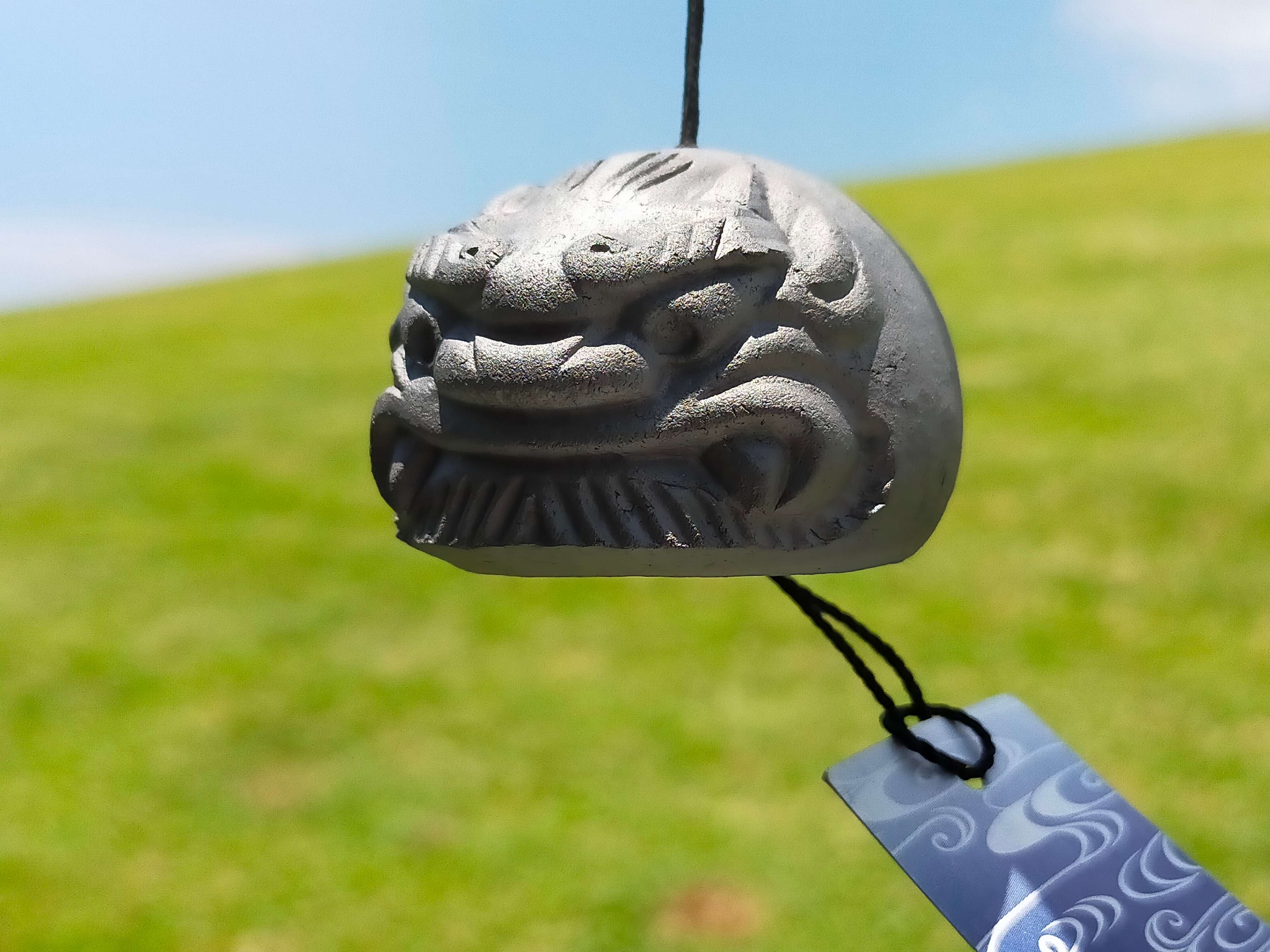 2020年夏、愛知県碧南市の中山神明社様からのご依頼で製作した【鬼瓦風鈴】を、神社様の許可を得て2021年7月から一般販売を開始します。当初は鬼瓦本体を鳴らす構造でしたが音が悪く、鉄製の小型風鈴のカバーとしたもののやはり澄んだ音にはなりませんでした。そこで発想を転換し「マンションなどでは風鈴の音が近所迷惑になりかねない」という問題を解決するとともに、魔除けの鬼瓦を気軽に生活に取り込めるアイテムとして考案しました。