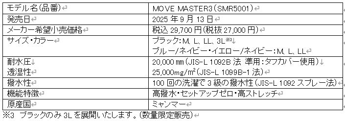 レインジャケット&パンツ「MOVE MASTER3(SMR5001)」