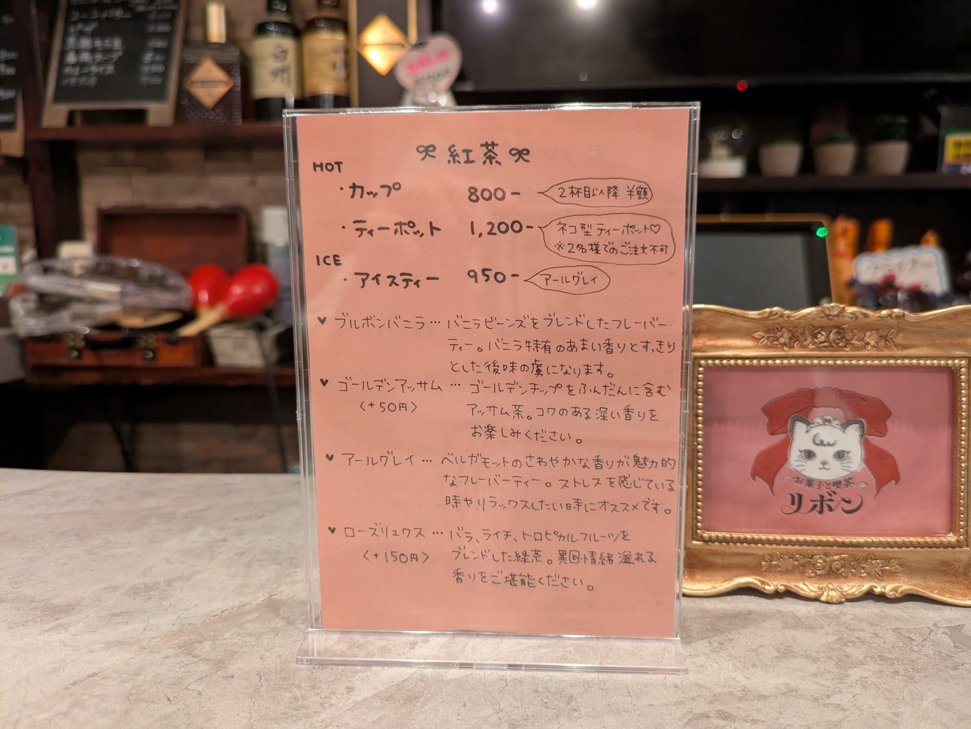 紅茶専門店として、定番からアレンジまで幅広いティーメニューをご用意。特に人気の「ラブリー❤︎リボンティー」は、おすすめの一杯です。