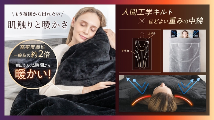 <羽毛布団並の暖かさ、一晩中ムレずに快適に>