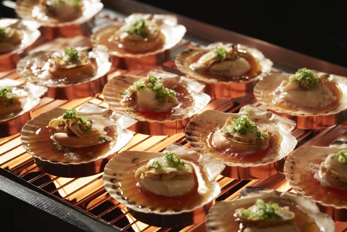 青森の文化を満喫できる宿「星野リゾート 青森屋」と奥入瀬渓流(おいらせけいりゅう)沿いに立つ唯一のリゾートホテル「星野リゾート 奥入瀬渓流ホテル」は、2020年11月1日~30日の期間、両施設のビュッフェレストランで「ホタテフェア」を開催します。これは、農林水産省が推し進める「#元気いただきますプロジェクト」に賛同した取り組みです。11月は、2つのレストランで合計8種類のホタテ料理を提供し、1か月で約6万枚のホタテを消費する見込みです。