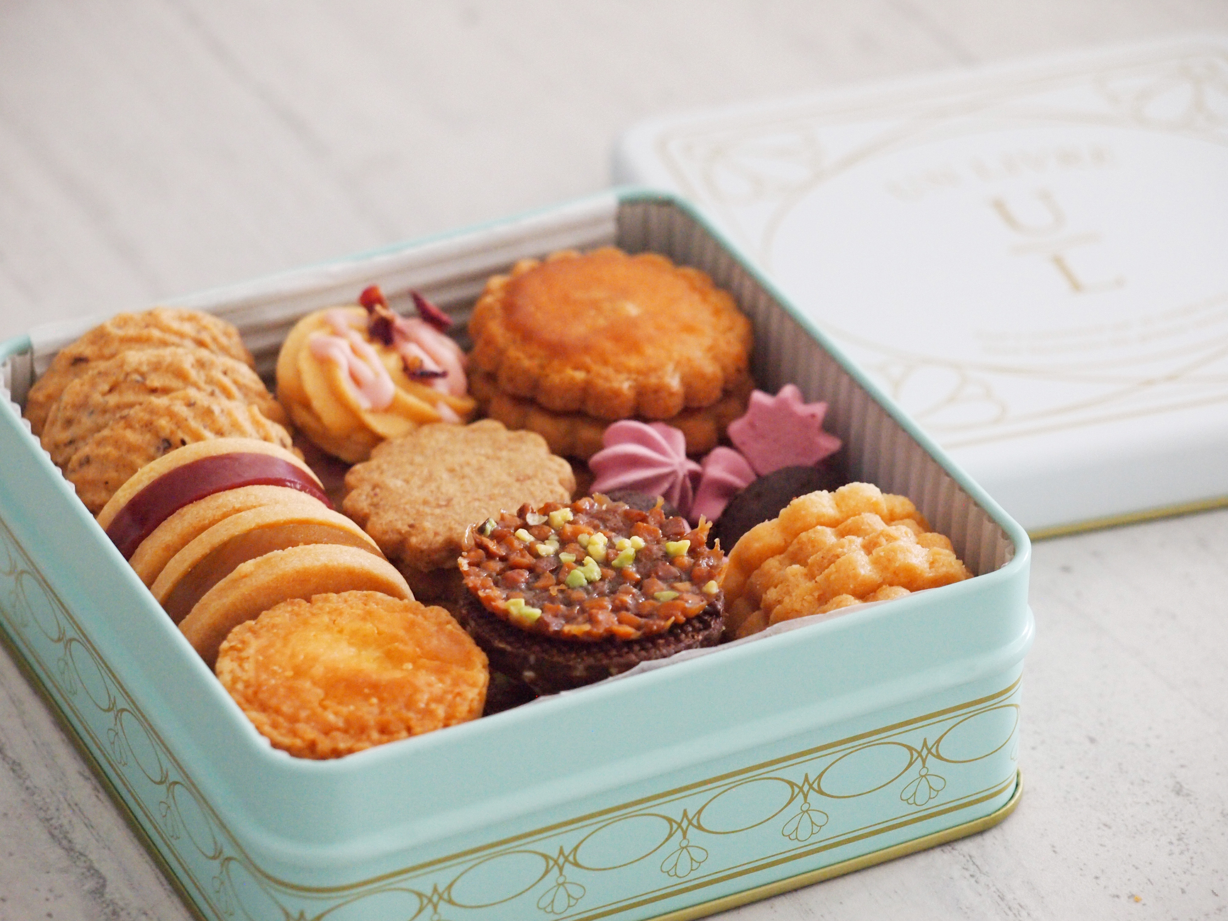 ラズベリー味とマンゴーパッション味など、10種類のクッキーとメレンゲを詰め合わせた、個性豊かな味わいのクッキー缶です。