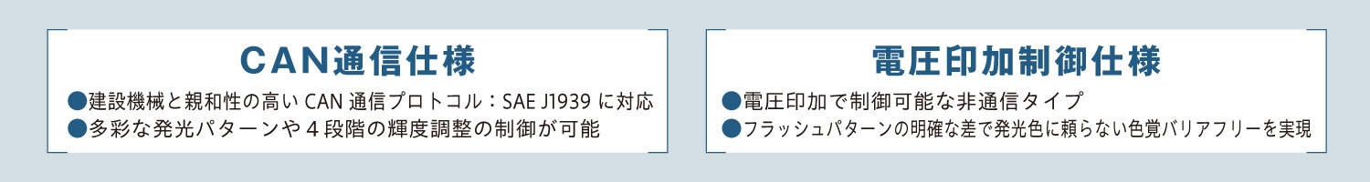 大型・中型の建設機械をターゲットに、タフな環境性能と炎天下でも抜群の視認性を備えた性能を有した製品GL10を発売中ですが、今回、新たに小型の建設機械・キャビンオペレータやフォークリフト、屋外装置のパイロットランプなどでも使用しやすいコンパクトな製品として、GL7・GL7T、GF7を開発しました。