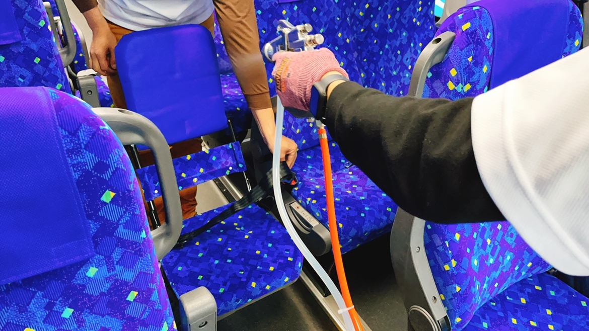 お客様へ“安心と快適な空間”をご提供すべく、バス車内に最先端の抗菌コーティング「nanozone COAT ナノゾーンコート」を施工いたしました。