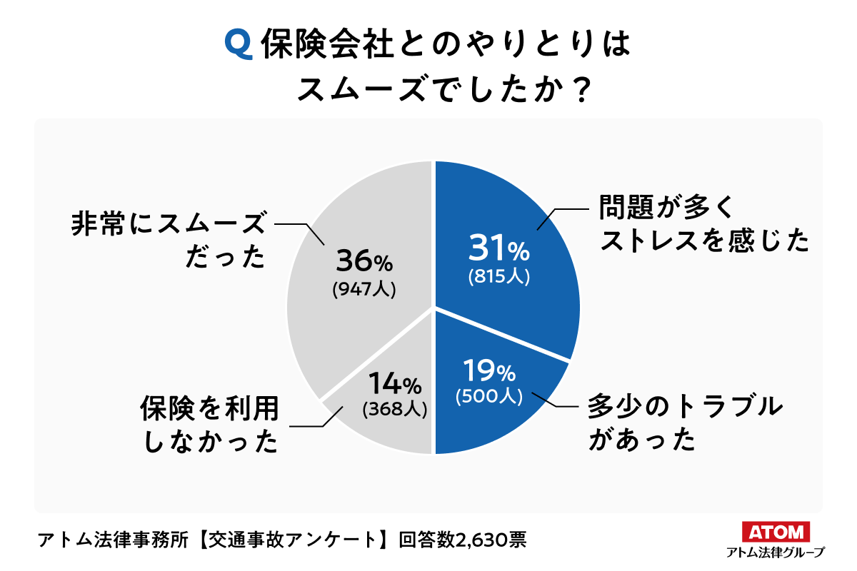 【独自調査】交通事故被害者の63%が保険会社の提示額に「不満」。事故後の対応、半数がストレスを実感。アトム法律事務所がアンケート調査を実施
