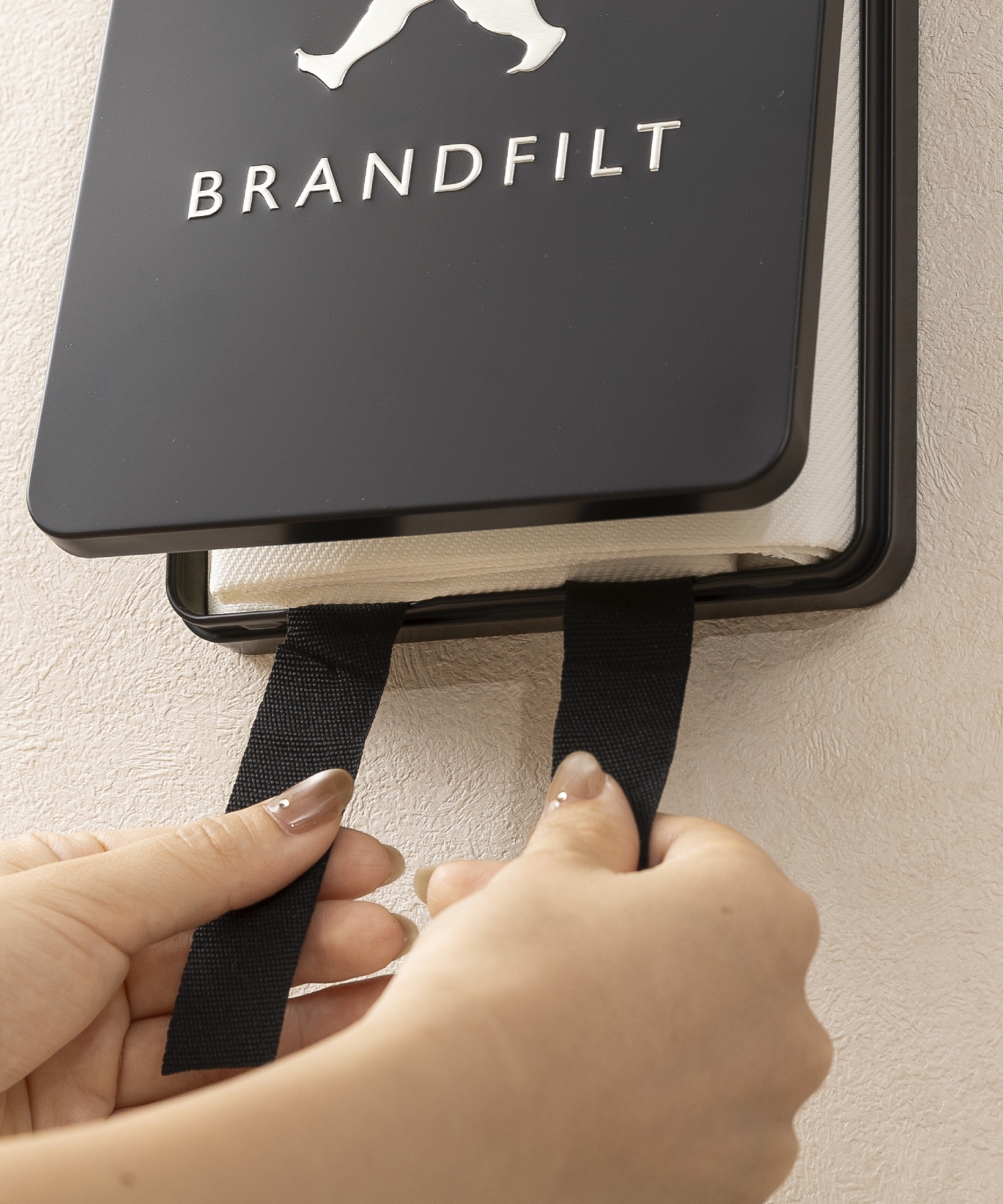 - カバーの底から、ぶら下がっている持ち手を引き下げて、ファイヤーブランケットを取り外します。