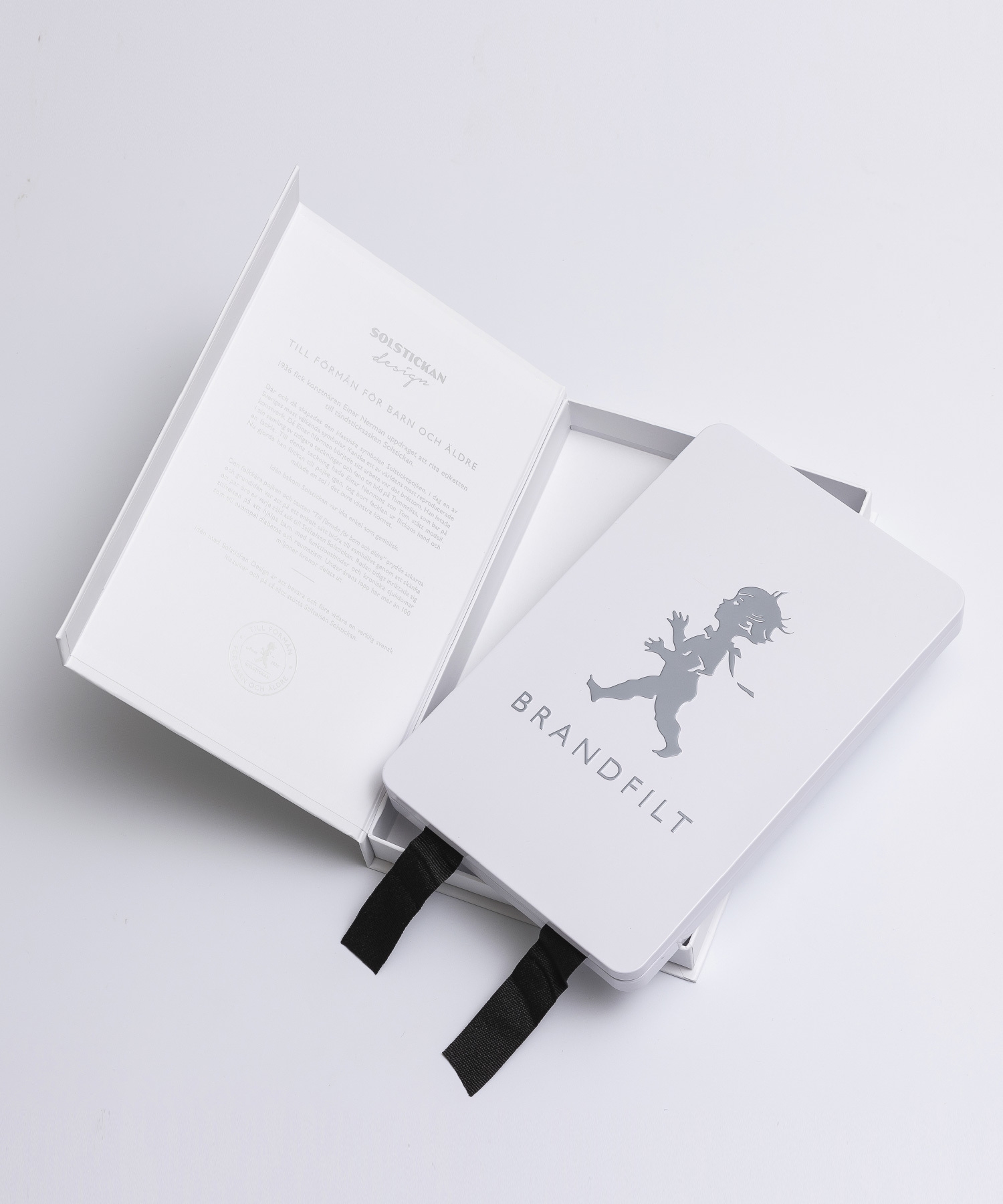 キッチンやリビングなど、火を使う場所にコンパクトに設置でき、いざという時に瞬時に取り出せるデザイン。北欧らしいシンプルでクラシックなSunstick Boyのエンボス加工が施されたスタイリッシュなスチールボックスは、インテリアにも自然に溶け込みます。