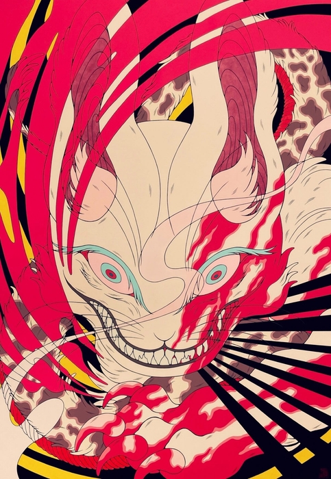 題材からイメージする神聖な世界観と二人が描く作品・作風の神秘性などに親和性を感じることから二人展の開催に至りました。狐、物の怪(モノノケ)、鬼、天狗、神社、神事など古来からの日本伝統文化の伝承に係わるものが描かれる作品の世界観は、