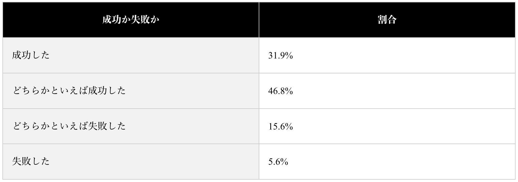 転職に成功したと思うか、もしくは失敗したと思うか調査した結果は以下の通りです。