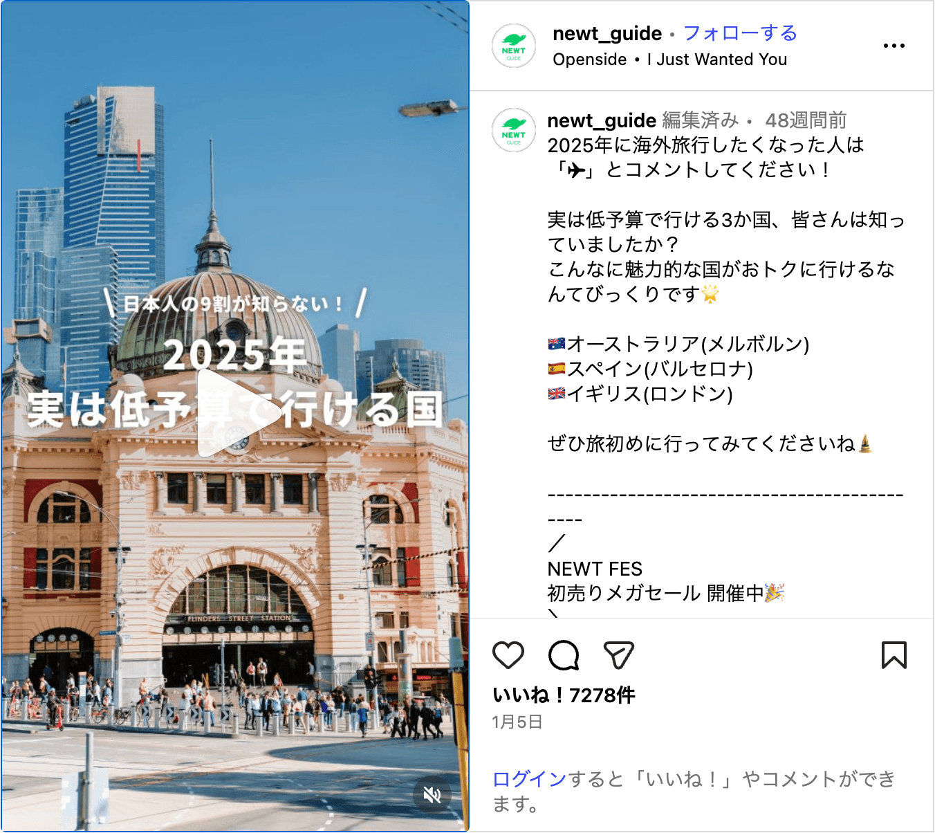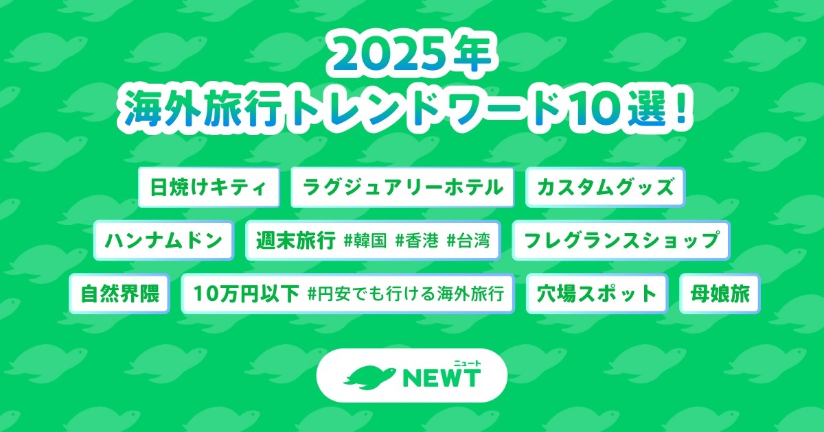 株式会社令和トラベル(本社:東京都渋谷区、代表取締役:篠塚 孝哉)が運営する、かしこい、おトク、旅行アプリ『NEWT(ニュート)』は、SNS総フォロワー数が58万人を越えるなどSNS活動にも力を入れています。今回、NEWTでは2025年のSNS海外旅行トレンドを明らかにするため、今年のIntagram投稿データから算出する「バズった投稿ランキング」と、NEWT SNS担当者が選出する「トレンドワード10選」を公開しました。