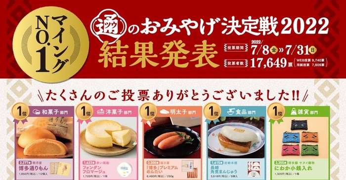 今年も開催!お客様が選ぶ九州みやげNo.1を決める「マイングNo.1通のおみやげ決定戦2023」