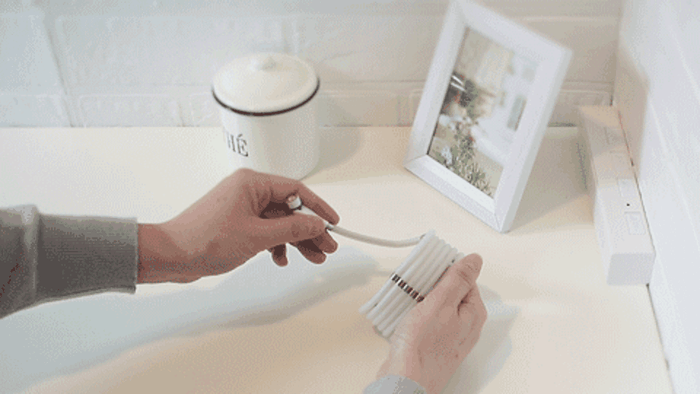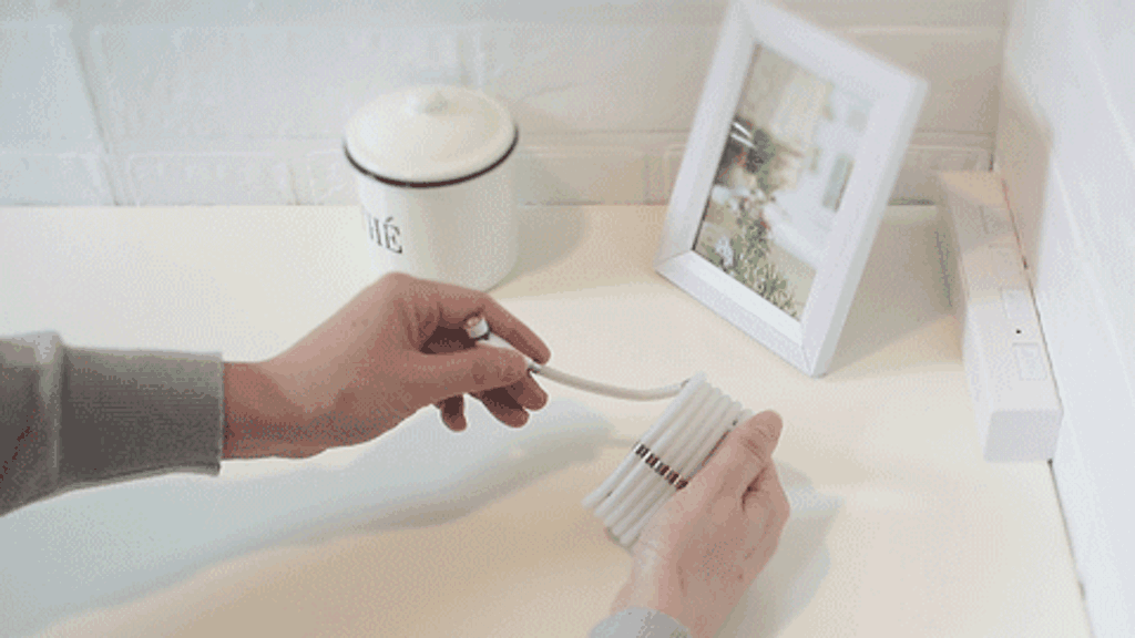 ケーブルに等間隔でマグネットが付いているので、くっつけながら、あっという間にまとめられます。