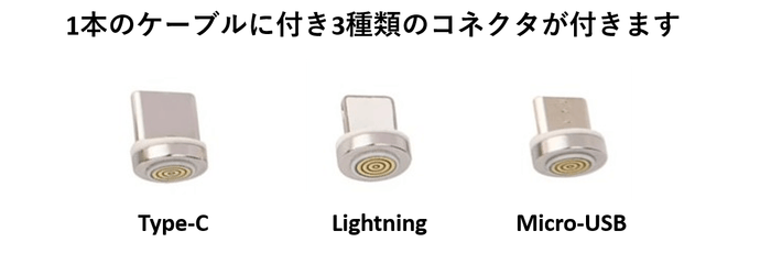 microUSB、ライトニング、Type-Cの端子が付属