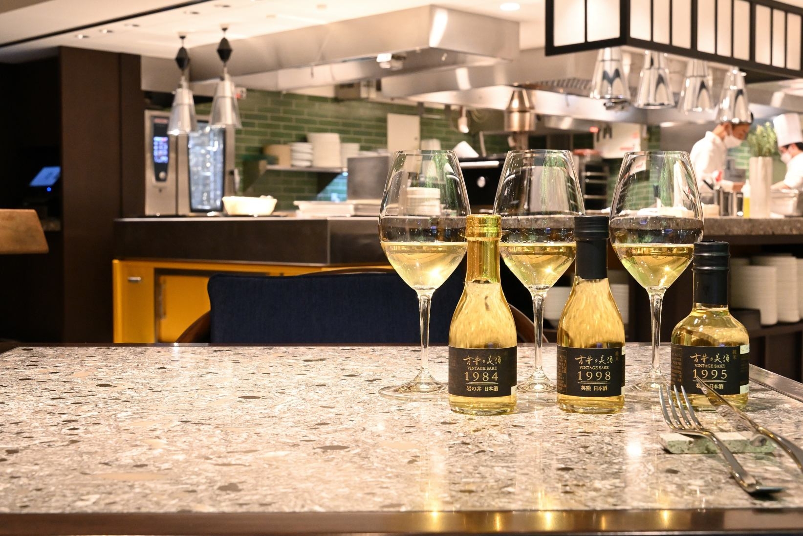 日本でも希少な長期熟成のヴィンテージ日本酒特に人気の高くコンクール金賞受賞歴もある「1984岩の井」、「古昔の美酒 1995 葵鶴」、「古昔の美酒 1998 英勲」をワイングラスと多彩な香りや個性の違いを楽しめる飲み比べのセットにてご提供いたします。