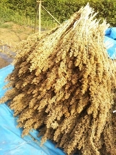 当法人の事業部のひとつに国産キヌア生産ファクトリーがあり、今年で4年目となり作付け面積も広げ、また長雨や台風などの影響で水浸しになることが多かった去年に比べ、今年は順調に育ちました。当日は大学生のボランティアや、一緒に生産している地域の皆さんと一緒に脱穀作業を行います。