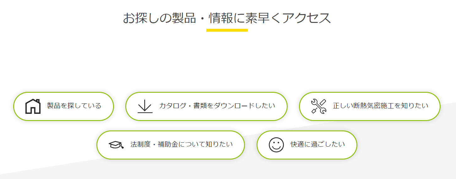 直感的なキーワードのボタンから、お探しの情報にいち早くたどり着けるようになっています。