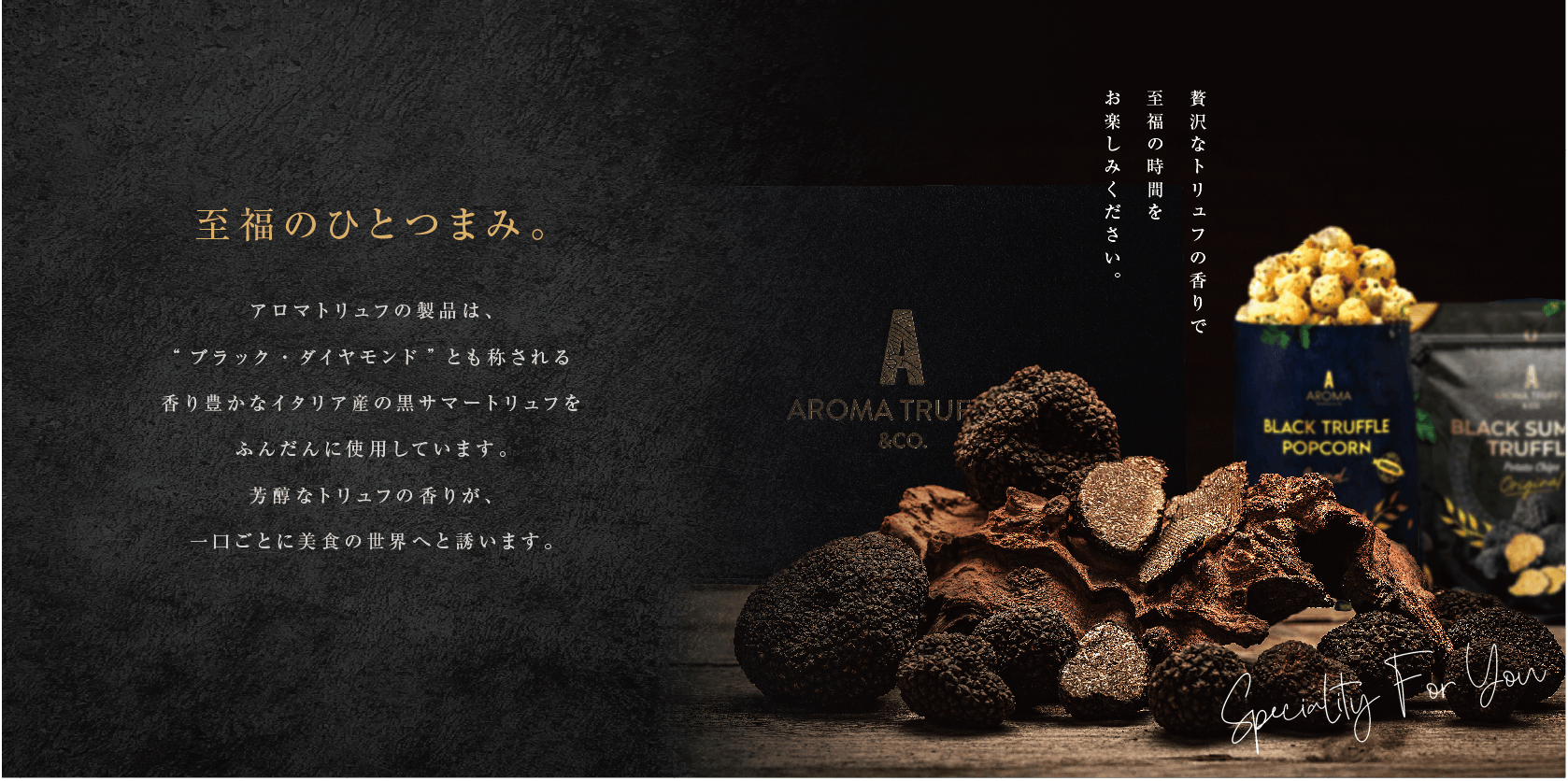 AROMA TRUFFLEは、単なるスナックではありません。イタリア・ウンブリア州スポレートから厳選したトリュフを贅沢に使い、まるで高級レストランの一皿のような奥深い風味を、カジュアルに楽しめる「ラグジュアリースナック」として確立しました。