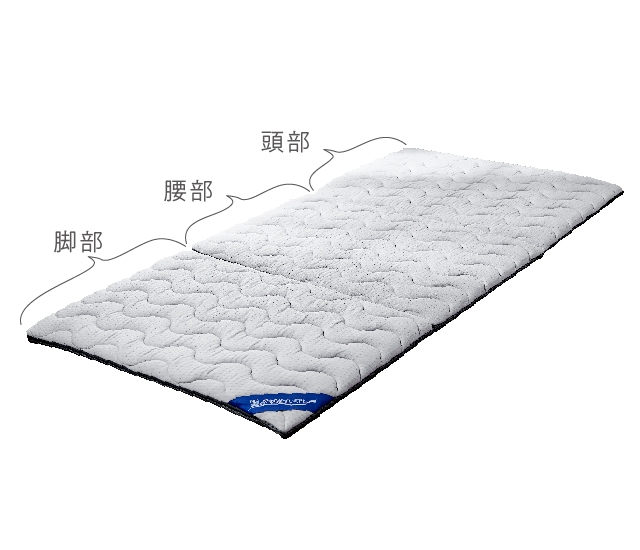 頭・腰・脚で硬さを変えて身体への負担を軽減する、オーバーレイマットレスです。